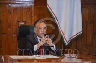 XALAPA, VERACRUZ., 23MAYO2018.- El gobernador de la entidad Miguel Ángel Yunes Linares sostuvó un encuentro de seguridad para tratar el robo a trenes en el estado. Tras concluir la reunión Yunes Linares anuncio una recompensa a quien proporcione información para dar con el paradero de Roberto de los Santos de Jesús, alias "El Bukana", presunto líder de la célula delictiva Sangre Nueva Zeta, señalados como responsables de los robos y afectaciones a las vías en la zona ferroviaria de 300 kilómetros entre el puerto de Veracruz y Acultzingo. FOTO: ALBERTO ROA /CUARTOSCURO.COM