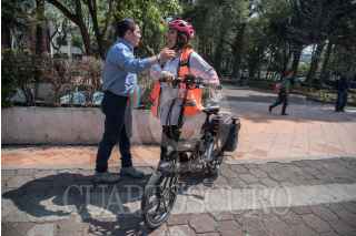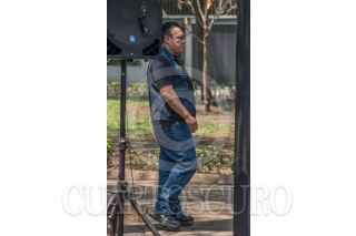 CIUDAD DE MÉXICO, 23MAYO2018.- Se presentó la Propuesta Contra la Corrupción Inmobiliaria, la cual busca impedir se construyan más inmuebles que no cumplan con los requisitos de la ley. Ante el clima de violencia por los recientes asesinatos a aspirantes políticos en distintas partes del país, un escolta se mantiene al pendiente en los alrededores del evento, cargando de forma discreta en su lado derecho lo que presuntamente es un arma de fuego. FOTO: MARIO JASSO /CUARTOSCURO.COM