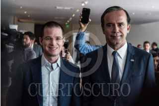 CIUDAD DE MÉXICO, 24MAYO2018.- Ricardo Anaya, candidato a la presidencia por la coalición “Por México al Frente”, y Bosco de la Vega, presidente del electo del Consejo Nacional Agropecuario (CNA). durante su llegada a la reunión privada con miembros del CNA. FOTO: MARIO JASSO /CUARTOSCURO.COM