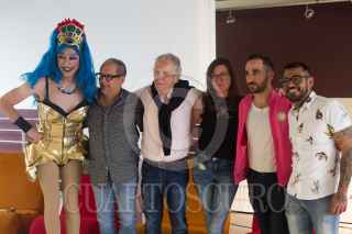 CIUDAD DE MÉXICO, 24MAYO2018.- El actor Roberto Cabral; José Luis Paredes Pacho, director del Museo Universitario del Chopo; Pedro Slim, fotógrafo y coleccionista de arte erótico; la fotógrafa Annick Donkers; el cantante Eledos, y Salvador Irys, durante la presentación de la exposición "Divina Comedia" que se presenta en el marco del 31 Festival Internacional por la Diversidad Sexual (FIDS). La muestra esta conformada por 72 piezas de 36 artistas mexicanos y extranjeros y aborda temáticas de sexualidad dentro de la población LGBTTTI, estará abierta al pública el 1 de junio en el Museo Universitario del Chopo. FOTO: MOISÉS PABLO /CUARTOCURO.COM