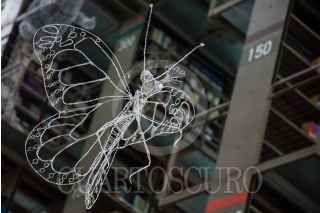 CIUDAD DE MÉXICO, 26MAYO2018.- Especies catalogadas en peligro de extinción por la Semarnat, son representadas en figuras de alambre en la a exposición “Especies de alambre: arte y conservación”, exhibida en la Biblioteca Vasconcelos. Este sábado se realizó los talleres de creación de figuras diminutas de alambre. FOTO: MARIO JASSO /CUARTOSCURO.COM