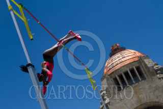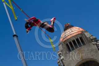 CIUDAD DE MÉXICO, 27MAYO2018.- La cubana Yarisley Silva tras conseguir los 4.70 mts durante el encuentro internacional urbano de salto con garrocha 2018 que tuvo como telón de fondo el Monumento a la Revolución. Esta marca jamas había sido conseguida por un garrochista en territorio nacional. FOTO: MOISÉS PABLO /CUARTOSCURO.COM
