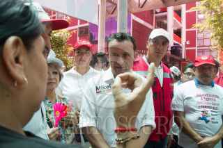 CIUDAD DE MÉXICO, 28MAYO2018.- El aspirante del PRI a la jefatura del Gobierno de la Ciudad, Mikel Arriola Peñalosa, acudió a las viviendas del popular barrio bravo del Tepito. Como parte de su gira proselitista. FOTO: VICTORIA VALTIERRA /CUARTOSCURO.COM