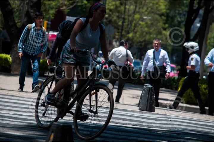 CIUDAD DE MÉXICO, 29MAYO2018.- Un repartidor de garrafones cruza la avenida Paseo de la Reforma durante un día soleado. FOTO: DIEGO SIMÓN SÁNCHEZ /CUARTOSCURO.COM