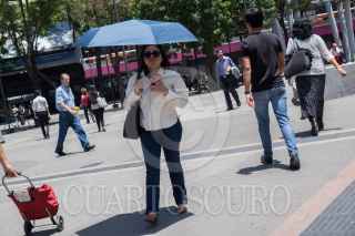 CIUDAD DE MÉXICO, 29MAYO2018.- Una mujer se protege del sol con una sombrilla por el metro insurgentes, la ciudad registró hoy una máxima de 31 grados. FOTO: ANDREA MURCIA /CUARTOSCURO.COM