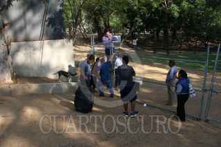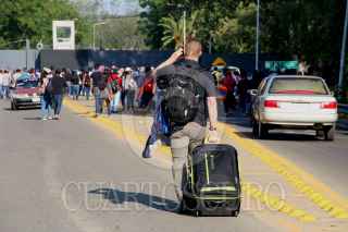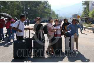 OAXACA, OAXACA, 30MAYO2018.- Integrantes de la sección 22 de la Coordinadora Nacional de los Trabajadores de la Educación (CNTE) iniciaron su tercer día de protestas luego de que el pasado lunes iniciaron un paro indefinido de labores. Los mentores tomaron las instalaciones del aeropuerto internacional de Santa Cruz Xoxocotlán, pasajeros se brincaron la valla perimetral del parque Bosque el Tequila para poder acceder a la terminal. Un grupo de profesores retiraron propaganda electoral en los alrededores del aeropuerto. FOTO: ARTURO PÉREZ ALFONSO/ CUARTOSCURO.COM