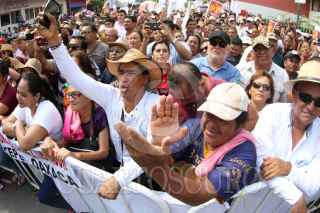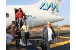 IXTEPEC, OAXACA, 30 MAYO2018.- Andrés Manuel López Obrador, candidato de MORENA a la presidencia de la república a su llegada al aeropuerto de Ixtepec donde el dia de hoy realizará actos de campaña con habitantes del Istmo de Tehuantepec. FOTO: SAÚL LÓPEZ /CUARTOSCURO.COM