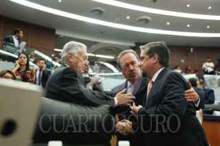 CIUDAD DE MÉXICO, 30MAYO2018.- Los senadores Manuel Bartlett, PT-Morena; Emilio Gamboa, PRI, y Luis Humberto Fernández Fuentes, PT-Morena, en la sesión de la Comisión Permanente en el Senado de la República. FOTO: CUARTOSCURO.COM