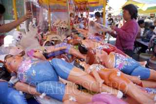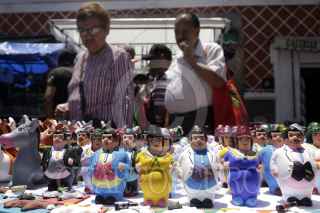 PUEBLA, PUEBLA, 31MAYO2018.- El día de hoy se celebró en México el "Día de las Mulas", fiesta religiosa tradicional del Corpus Christi, en la que según algunos historiadores, los hacendados llegaban con sus mulas cargados de la primera cosecha del año para ofrecerla como diezmo a la iglesia; por lo que en esta fecha se acostumbra a regalar una mulita o un panzón hechos de barro o papel a manera de sátira. FOTO: HILDA RIOS /CUARTOSCURO.COM