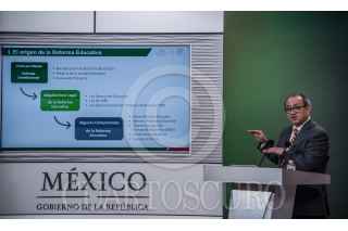 CIUDAD DE MÉXICO, 31MAYO2018.- Otto Granados Roldán, secretario de Educación Pública, en conferencia de prensa informó sobre los avances que ha tenido de la Reforma Educativa, en el ámbito de evaluación docente, en donde han participado más de un millón 277 mil maestros, gracias de los cuales se han otorgado 190 mil plazas por promociones de mérito o por concurso. FOTO: MARIO JASSO /CUARTOSCURO.COM