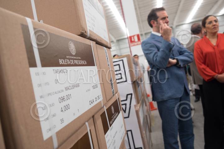 TEPOTZOTLÁN, ESTADO DE MÉXICO, 01JUNIO2018.- Lorenzo Córdova Vianello, Consejero Presidente, Miguel Ángel Solís Rivas, director ejecutivo de Organización Electoral, Pamela San Martín Ríos Y valles, Consejera electoral, Dania Paola Ravel Cuevas, Consejera Electoral, Marco Antonio Baños Martínez, consejero Electoral y Presidente de la comisión de capacitación y organización electoral, Edmundo Jacobo Molina, Secretario Ejecutivo, Beatriz Claudia Zavala, Consejera Electoral, y Ciro Murayama Rendón, Consejero Electoral, encabezaron el banderazo e inicio de la distribución de las boletas electorales a los 300 Distritos Electorales por parte del INE. FOTO: ANDREA MURCIA /CUARTOSCURO.COM