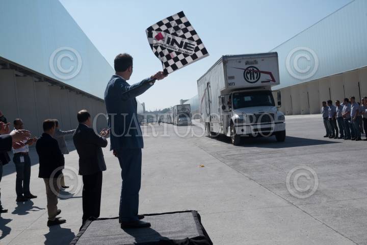 TEPOTZOTLÁN, ESTADO DE MÉXICO, 01JUNIO2018.- Lorenzo Córdova Vianello, Consejero Presidente, Miguel Ángel Solís Rivas, director ejecutivo de Organización Electoral, Pamela San Martín Ríos Y valles, Consejera electoral, Dania Paola Ravel Cuevas, Consejera Electoral, Marco Antonio Baños Martínez, consejero Electoral y Presidente de la comisión de capacitación y organización electoral, Edmundo Jacobo Molina, Secretario Ejecutivo, Beatriz Claudia Zavala, Consejera Electoral, y Ciro Murayama Rendón, Consejero Electoral, encabezaron el banderazo e inicio de la distribución de las boletas electorales a los 300 Distritos Electorales por parte del INE. FOTO: ANDREA MURCIA /CUARTOSCURO.COM