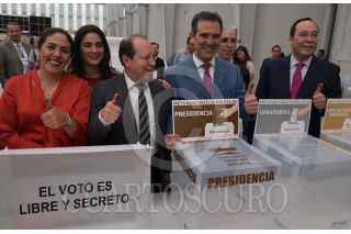 TEPOTZOTLÁN, ESTADO DE MÉXICO, 01JUNIO2018.- Lorenzo Córdova Vianello, Consejero Presidente, Miguel Ángel Solís Rivas, director ejecutivo de Organización Electoral, Pamela San Martín Ríos Y valles, Consejera electoral, Dania Paola Ravel Cuevas, Consejera Electoral, Marco Antonio Baños Martínez, consejero Electoral y Presidente de la comisión de capacitación y organización electoral, Edmundo Jacobo Molina, Secretario Ejecutivo, Beatriz Claudia Zavala, Consejera Electoral, y Ciro Murayama Rendón, Consejero Electoral, encabezaron el banderazo e inicio de la distribución de las boletas electorales a los 300 Distritos Electorales por parte del INE. FOTO: ANDREA MURCIA /CUARTOSCURO.COM