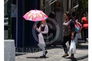 TOLUCA, ESTADO DE MÉXICO, 01JUNIO2018.- Ante las altas temperaturas que se han presentado en toda la República Mexicana, habitantes del Valle de Toluca, salen a realizar sus actividades con sombrero y paraguas; atendiendo las recomendaciones de la Secretaria de Salud del Estado de México. FOTO: ARTEMIO GUERRA BAZ /CUARTOSCURO.COM