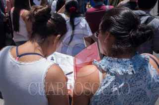 CIUDAD DE MÉXICO, 02JUNIO2018.- Pese las altas temperaturas, cientos de jóvenes la mayoría acompañados por sus familiares comenzaron a hacer filas desde temprana hora a las afueras de las instalaciones de la Universidad Latina donde se realizaría el segundo examen de ingreso a la UNAM. FOTO: ANDREA MURCIA /CUARTOSCURO.COM