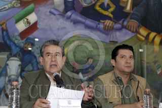PUEBLA, PUEBLA, 02JUNIO2018.- Diódoro Carrasco, secretario general de gobierno del estado acompañado por el secretario de seguridad Jesús Morales e integrantes del gabinete de seguridad, dieron a conocer los detalles del homicidio de Juana Irais Maldonado, candidata a diputada local y Erika Cázares, regidora, ambas del Partido Verde Ecologista, registrado en la localidad de Cacahuatlán en Zihuateutla. Dieron a conocer que hay cinco personas detenidas que serán investigadas para descartar o fincar responsabilidades. FOTO: HILDA RIOS /CUARTOSCURO.COM