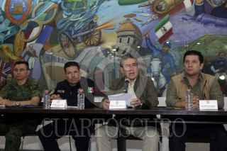 PUEBLA, PUEBLA, 02JUNIO2018.- Diódoro Carrasco, secretario general de gobierno del estado acompañado por el secretario de seguridad Jesús Morales e integrantes del gabinete de seguridad, dieron a conocer los detalles del homicidio de Juana Irais Maldonado, candidata a diputada local y Erika Cázares, regidora, ambas del Partido Verde Ecologista, registrado en la localidad de Cacahuatlán en Zihuateutla. Dieron a conocer que hay cinco personas detenidas que serán investigadas para descartar o fincar responsabilidades. FOTO: HILDA RIOS /CUARTOSCURO.COM