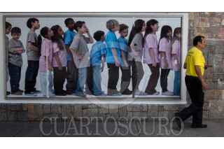 CIUDAD DE MÉXICO, 03JUNIO2018.- Un hombre circula por las calles de la colonia Escandón seguido por una fila de niños, anuncio de una escuela ubicada en la misma colonia. FOTO: GALO CAÑAS /CUARTOSCURO.COM