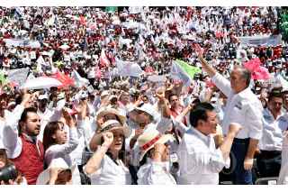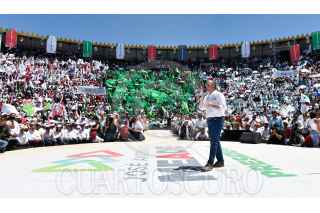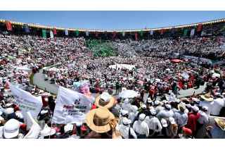 PACHUCA, HIDALGO, 03JUNIO2018.- José Antonio Meade Kuribreña, candidato a la Presidencia de la República por la coalición "Todos por México", encabezó el evento "Avanzar Contigo" en la Plaza de Toros Monumental, en donde aseguró que trabajará por una agenda para las mujeres y les prometió créditos a la palabra. FOTO: CUARTOSCURO.COM