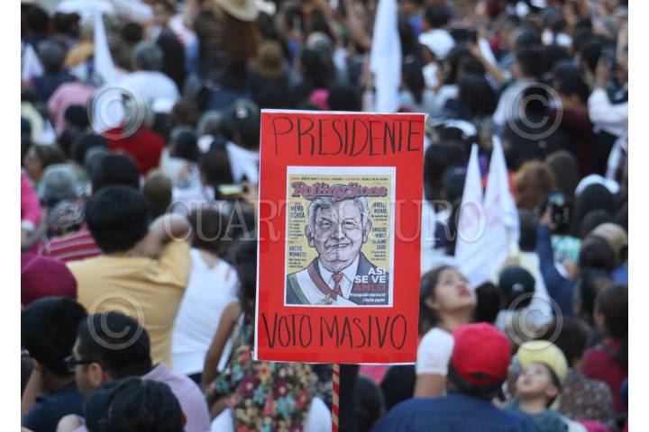 CIUDAD DE MÉXICO, 03JUNIO2018.- Andrés Manuel López Obrador, candidato de MORENA a la presidencia de la república, se reunió con miles de simpatizantes en la explanada de la delegacion Tlahuac. FOTO: SAÚL LÓPEZ /CUARTOSCURO.COM