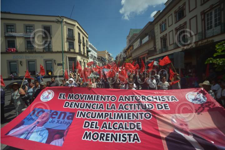 XALAPA, VERACRUZ, 04JUNIO2018.- Integrantes del movimiento Antorcha Campesina marchan y protestan frente a palacio municipal en Xalapa exigiendo la aplicación de recursos para obras en colonias por parte del alcalde Hipólito Rodriguez. FOTO: ALBERTO ROA /CUARTOSCURO.COM