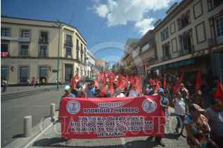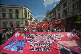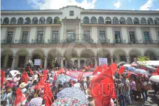 XALAPA, VERACRUZ, 04JUNIO2018.- Integrantes del movimiento Antorcha Campesina marchan y protestan frente a palacio municipal en Xalapa exigiendo la aplicación de recursos para obras en colonias por parte del alcalde Hipólito Rodriguez. FOTO: ALBERTO ROA /CUARTOSCURO.COM