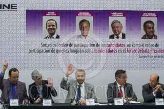 CIUDAD DE MÉXICO, 04JUNIO2018.- En el INE, se realizó el Sorteo del orden de participación de los candidatos y de quienes fungirán como moderadores en el Tercer Debate Presidencial. FOTO: ISAAC ESQUIVEL /CUARTOSCURO.COM