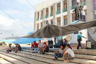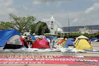 TUXTLA GUTIÉRREZ, CHIAPAS, 04JUNIO2018.- Maestros pertenecientes a la Coordinadora Nacional de Trabajadores de la Educación, marcharon este lunes en la capital chiapaneca e iniciaron paro indefinido frente a las instalaciones del Palacio de Gobierno, ante la falta de acuerdos con el Gobierno Federal en el tema de la Reforma Educativa. Como parte de su lucha, se prevé una serie de bloqueos carreteros en el estado a partir del día de mañana. FOTO: JACOB GARCÍA /CUARTOSCURO.COM