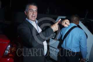 CIUDAD DE MÉXICO, 04JUNIO2018.- Jaime Rodríguez "El Bronco", candidato independiente a la presidencia del país, durante su llegada y salida a la reunión con empresarios en el Club de Empresarios Bosques. FOTO: TERCERO DÍAZ /CUARTOSCURO.COM