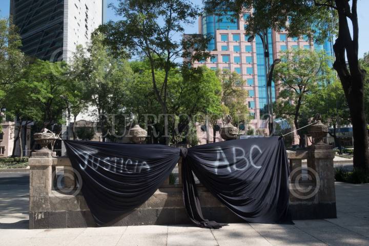 CIUDAD DE MÉXICO, 05JUNIO2018.- Padres y familiares de los 49 niños que perdieron la vida en el incendio de la Guardería ABC de Hermosillo, el 5 de junio de 2009; colocaron un florero con 49 estrellas, flores y un moño negro. Este último representa el aniversario luctuoso y el dolor de los familiares. El moño se había colocado en la entrada del Instituto Mexicano del Seguro Social (IMSS), pero los padres lo movieron frente el monumento ABC donde pasa los transeúntes ya que no creen que la institución lamente la muerte de los infantes. FOTO: ANDREA MURCIA /CUARTOSCURO.COM