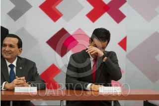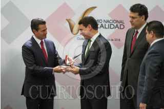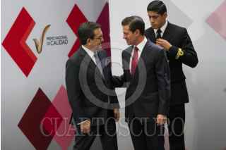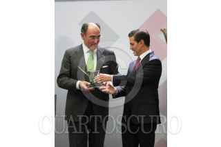 CIUDAD DE MÉXICO, 06JUNIO2018.- Jaime Francisco Hernández Martínez, director de la Comisión Federal de Electricidad, y José Ignacio Sánchez Galán, presidente de Iberdrola, durante la ceremonia de entrega del 28 Premio Nacional de Calidad, en la residencia oficial de Los Pinos. FOTO: MOISÉS PABLO /CUARTOSCURO.COM