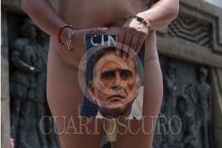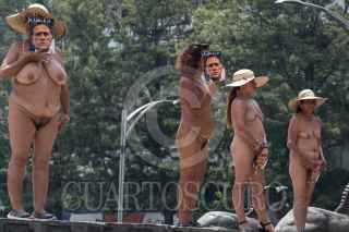 CIUDAD DE MÉXICO, 07JUNIO2018.- Integrantes de los 400 pueblos se manifestaron en el Monumento a Cuauhtémoc en Paseo de la Reforma. Como es costumbre en las protestas de la organización, al ritmo de la música los quejosos se quitaron la ropa para bailar y solicitar la atención de las autoridades. FOTO: ANDREA MURCIA /CUARTOSCURO.COM