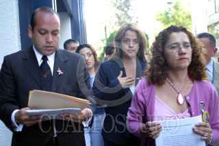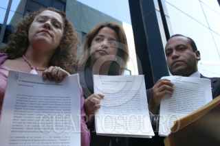 MEXICO, D.F. 25ABRIL2005.- Los diputados locales del PRD, Maricela Contreras, Lorena Villavicencio y Julio Cesar Moreno, muetran a los medios de comunicación la demanda solicitada ante la PGR en contra del subprocurador Javier Vega Memije. FOTO: Sandra Perdomo/CUARTOSCURO.COM