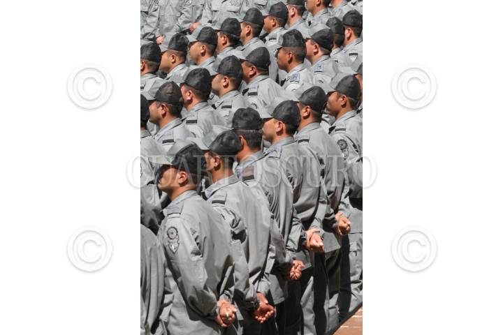 MEXICO, D.F. 25ABRIL2005.- El sub secretario de la SSP y el titular de la SSP, Manuel Ángel Yunez y Ramón Martín Huerta, durante la toma de protesta de nuevos elementos de la PFP. El almirante Tomás Valencia la derecha de la imagen. FOTO: Sandra Perdomo/CUARTOSCURO.COM