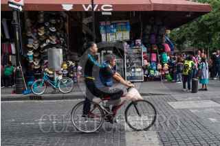 CIUDAD DE MÉXICO, 09JUNIO2018.- Madre e hijo transitan en bicicleta por las calles del centro capitalino. Las autoridades informaron la tarde del pasado jueves sobre la suspensión de la Fase 1 de Contingencia Ambiental por Ozono en la Zona Metropolitana del Valle de México, que se activó un día previo, por primera vez del año. FOTO: ANDREA MURCIA /CUARTOSCURO.COM