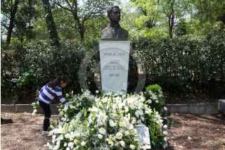 CIUDAD DE MÉXICO, 10JUNIO2018.- En el marco del aniversario luctuoso del Poeta Ramón López Velarde; el cual se celebra el próximo 15 de Junio y que se cumplen 97 años de haber fallecido. Se realizo un pequeño homenaje al Zacatecano en la Rotonda de las personas ilustre en el Panteón de Dolores, donde se encuentra enterrado. FOTO: ANDREA MURCIA /CUARTOSCURO.COM