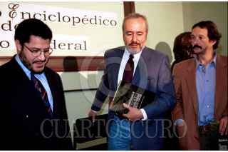 Martí Batres, Humberto Musachio autor, Jaime Aviles encabezaron la presentación del Diccionario Enciclopedico del Distrito Federal, en el salón verde del recinto legislativo. FOTO: Victoria Valtierra/CUARTOSCURO.COM