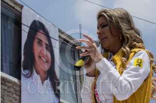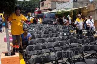CIUDAD DE MÉXICO, 10JUNIO2018.- Con sillas vacías a lo laterales, Alejandra Barrales, candidata a la jefatura de gobierno por la coalición “Por la CDMX al Frente”, sostuvo una reunión vecinal con habitantes de la delegación Gustavo A. Madero, en la plaza Independencia. Barrales Magdaleno llamó a cerrar filas y a cerrar fuerte rumbo al primero de julio. FOTO: GALO CAÑAS /CUARTOSCURO.COM