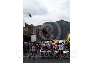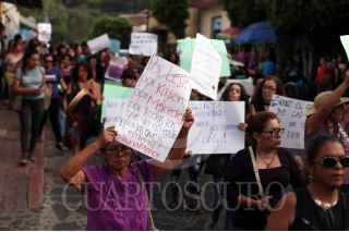 TEPOZTLAN, MORELOS, 10JUNIO2018.- Marcha contra los Feminicidios realizada esta tarde por las calles de este municipio, donde en el ultimo mes se han registrado tres casos. El pasado miércoles se localizó el cadáver calcinado de una estudiante de odontología en un paraje de este pueblo mágico. Durante la marcha, el helicóptero de la Comisión Estatal de Seguridad Publica FOTO: MARGARITO PÉREZ RETANA /CUARTOSCURO.COM