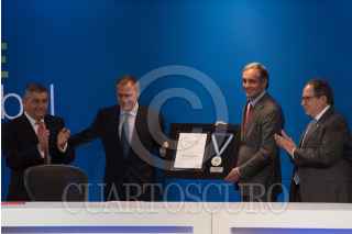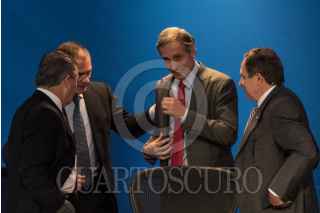 CIUDAD DE MÉXICO, 12JUNIO2018.- Salvador Nava, presidente del Tecnológico de Monterrey, Ignacio de la Vega, decano de EGADE Business School; José Antonio Quesada; Juan Pablo Murra e Ignacio de la Vega, realizaron la entrega de la medalla EGADE al Liderazo Global en Negocios a Daniel Servitje, director general y presidente de Grupo Bimbo, en reconocimiento a su trayectoria en donde ha generado consolidar a Grupo Bimbo como la líder en panificación a nivel mundial con presencia en 22 países. FOTO: MARIO JASSO /CUARTOSCURO.COM