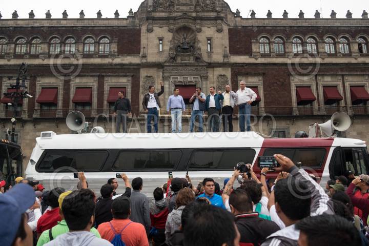 CIUDAD DE MÉXICO, 12JUNIO2018.- Un policía se quedó dormido durante el cierre de paso a trabajadores de la educación manifestantes. Maestros de la CNTE se manifestaron y marcharon por Reforma; miembros de la policía les impidieron el paso frente al llegar al Palacio de Bellas Artes, luego de 30 min los dejaron continuar, logrando pisar después de 4 años el Zócalo capitalino. Exigen que se realice una mesa de diálogo hacía la prorrogación de la Reforma Educativa. FOTO: ANDREA MURCIA /CUARTOSCURO.COM