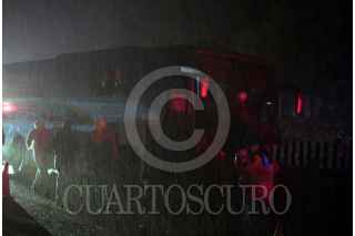 TEPOZTLÁN, MORELOS, 13JUNIO2018.- Un deslave de tierra y grandes piedras cayeron sobre la parte delantera de un autobús de la línea Futura que circulaba en el kilómetro 67 de la autopista México-Cuernavaca, delante de la curva conocida como La Pera. El chofer murió prensado luego que las piedras golpearon la unidad. También se reportan 36 pasajeros lesionados. La circulación en la pista se vio afectada por varias horas, además la lluvia retardo los trabajos de levantamiento del cadáver y limpieza de la zona. FOTO: MARGARITO PÉREZ RETANA /CUARTOSCURO.COM