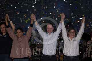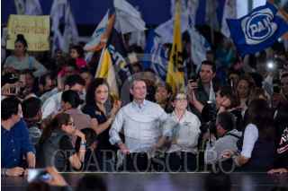CIUDAD DE MÉXICO, 13JUNIO2018.- Ricardo Anaya Cortés, candidato a la presidencia de la República por la coalición “Por México al Frente” sostuvo una reunión en el deportivo Plan Sexenal con los vecinos de la delegación Miguel Hidalgo. Acompañado de Mariana Gómez del Campo, candidata a diputada federal; Alejandra Barrales, candidata a jefe de gobierno por la coalición “Por la CDMX al Frente”, y Margarita Martínez Fisher, candidata a alcaldesa de dicha delegación, Anaya Cortés sostuvo que el fue el ganador del debate del día de ayer y que el primero de julio le ganaran la elección al PRIMOR (PRI-Morena). FOTO: GALO CAÑAS /CUARTOSCURO.COM