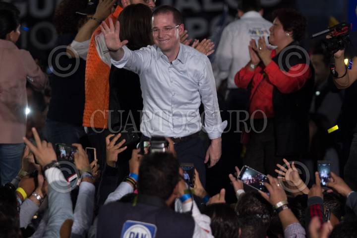 CIUDAD DE MÉXICO, 13JUNIO2018.- Ricardo Anaya Cortés, candidato a la presidencia de la República por la coalición “Por México al Frente” sostuvo una reunión en el deportivo Plan Sexenal con los vecinos de la delegación Miguel Hidalgo. Acompañado de Mariana Gómez del Campo, candidata a diputada federal; Alejandra Barrales, candidata a jefe de gobierno por la coalición “Por la CDMX al Frente”, y Margarita Martínez Fisher, candidata a alcaldesa de dicha delegación, Anaya Cortés sostuvo que el fue el ganador del debate del día de ayer y que el primero de julio le ganaran la elección al PRIMOR (PRI-Morena). FOTO: GALO CAÑAS /CUARTOSCURO.COM