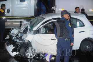 CIUDAD DE MÉXICO., 14JUNIO2018.- Un hombre de aproximadamente 35 años, perdió la vida al impactar el auto que conducía un March de Nissan, contra la parte trasera de un tráiler que esperaba cambio de luz de semáforo en Eje Central y Circuito Interior colonia Ex Hipódromo de Peralvillo. A pesar de que la bolsa de aire se acciono, no logro salvar la vida. Este modelo de auto junto con Note y Versa, Mantienen un llamado a revisión, alerta por parte de PROFECO, por defecto en la bolsa de aire. FOTO: LUIS CARBAYO /CUARTOSCURO.COM