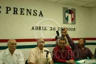 VILLAHERMOSA, TABASCO 26 ABRIL 2005.- En la sede estatal del PRI, fue efectuada una conferencia de prensa por el ex gobernador de Jalisco Guillermo Cosio Vidaurri, actual Delegado Regional del Cen del PRI, quien presentó a Rafael González Pimienta como Delegado Estatal de PRI Tabasco, atestiguando el acto la dirigenta estatal Martha Victoria Andrade Alcocer. FOTOS: Marco Polo Guzmán Hernández/CUARTOSCURO.COM