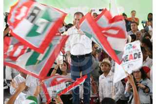 ETCHOJOA, SONORA, 14JUNIO2018.- El candidato de la coalición Todos por México a la Presidencia de la República, José Antonio Meade, afirmó que Andrés Manuel López Obrador y su colaborador Javier Jiménez Espriú deben rendir cuentas por el caso Odebrecht. Lo anterior, debido a que Jiménez Espriú realizó negocios con la empresa Idesa-Braskem, filial de Odebrecht en nuestro país, para suministrar etano a Petróleos Mexicanos (PEMEX) en 2010. FOTO: CUARTOSCURO.COM