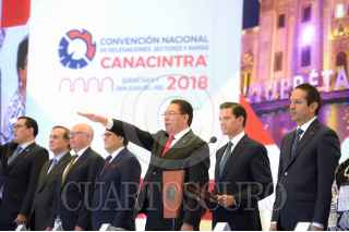 QUERÉTARO, QUERÉTARO, 14JUNIO2018.- El Presidente Enrique Peña Nieto afirmó estar convencido de que en el proceso electoral demostraremos, una vez más, que las instituciones mexicanas son sólidas y confiables y que la nuestra es una democracia madura. Lo anterior, durante su participación en la Convención Nacional de Delegaciones, Sectores y Ramas de la CANACINTRA 2018. FOTO: PRESIDENCIA /CUARTOSCURO.COM