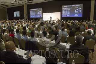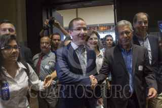 MONTERREY, NUEVO LEÓN, 15JUNIO2018.- En un evento organizado por la CAINTRA y empresarios en Nuevo León, "Diálogos con candidatos presidenciales" Ricardo Anaya, candidato a la presidencia de México, acudió a las instalaciones de CINTERMEX y en su discurso ofreció apliar el metro de la ciudad a diferentes municipios. FOTO: GABRIELA PÉREZ MONTIEL /CUARTOSCURO.COM
