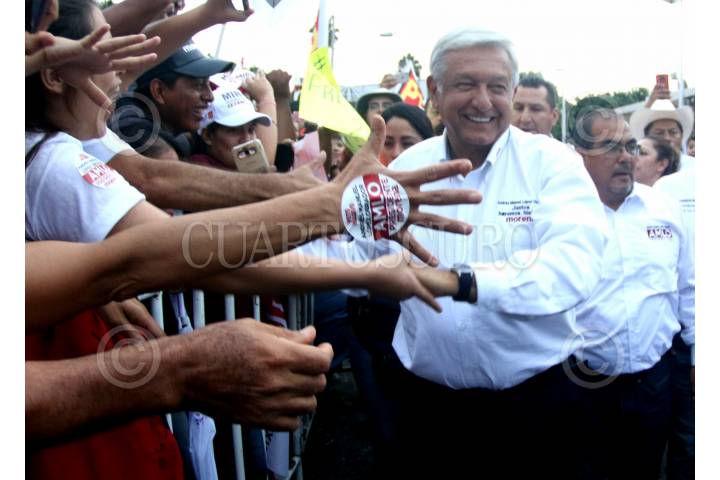 CUERNAVACA, MORELOS, 16JUNIO2018.- Simpatizantes de Andrés Manuel López Obrador, candidato presidencial de la coalición Juntos Haremos Historia (Movimiento de Regeneración Nacional, Partido Encuentro Social y Partido del Trabajo) y de Cuauhtémoc Blanco Bravo candidato a la gubernatura en su cierre de campaña en el estado. FOTO: MARGARITO PÉREZ RETANA /CUARTOSCURO.COM